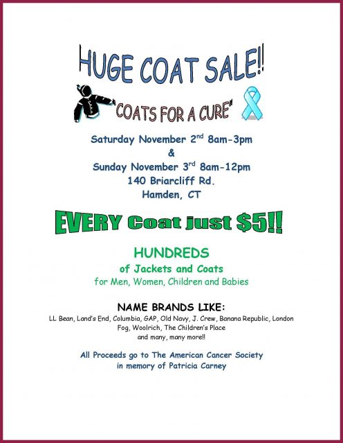 .....Hamden resident Thomas Carney is doing just that, by holding a coat sale on Nov 2-3 to...