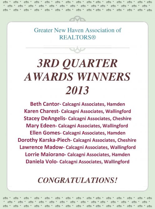 CONGRATULATIONS to our Calcagni REALTORS who were recently awarded with the 2013 3rd Quarter...