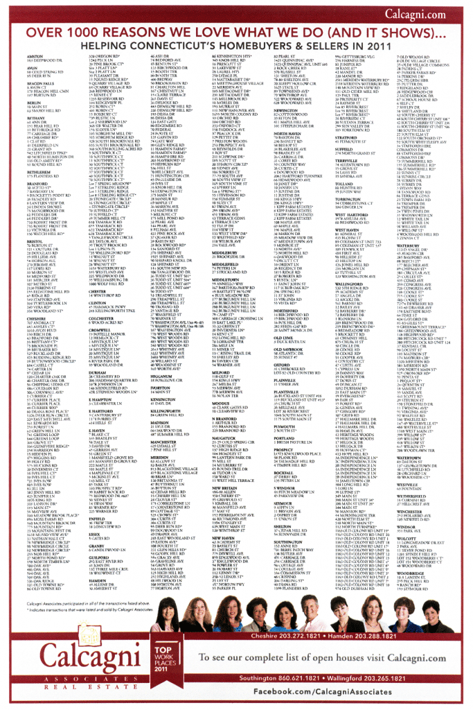 Check out our 2011 Sales Resume Ad, running in this weekend's Cheshire Herald, New Haven Register & Record-Journal...We're excited to announce that Calcagni Associates has assisted 1,000 Home Buyers & Sellers in...