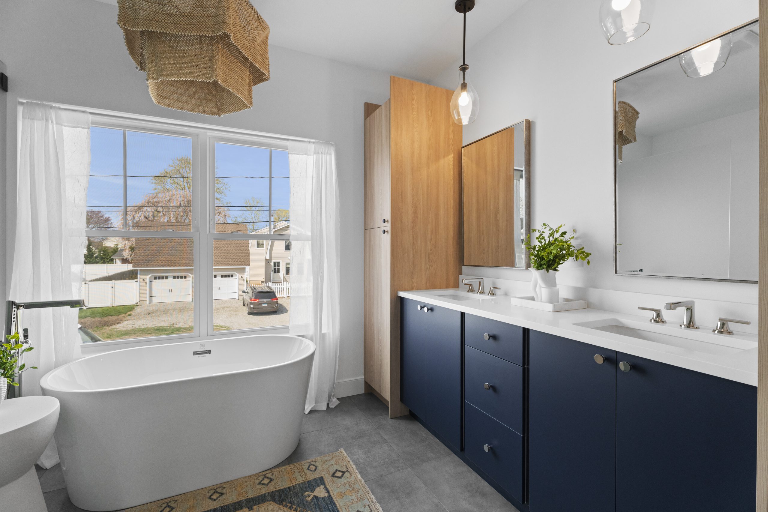 Soaring 9- to 22-foot ceilings flood every room with natural light. From the kitchen and second-floor living spaces, gaze out over South Cove and take in the serenity of water views from your own home.