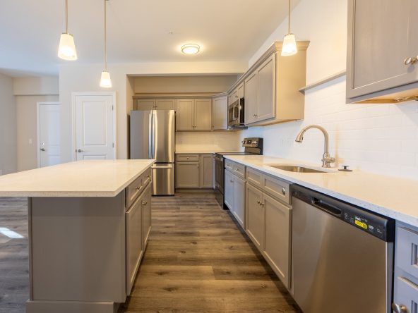 The open-concept living areas provide the perfect backdrop for entertaining guests or unwinding after a long day. Each apartment features stainless steel energy-efficient appliances, gorgeous quartz kitchen countertops, a full-size washer and dryer, and two generously sized bedrooms.